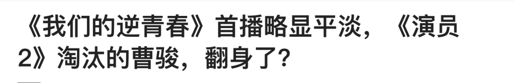 号外号外,本季《演员请就位》大家意难平的头号选手曹骏复活成功了,喜大普奔!与此同时,曹骏主演的新剧《我们的逆青春》上周也在优酷温暖上线。作为曹骏翻红后的首部作品,《我们的逆青春》可谓是万众期待,但是有时候期待越高,就越难让所有人满意,这不,首播之后就有网友表示该剧略显平淡……