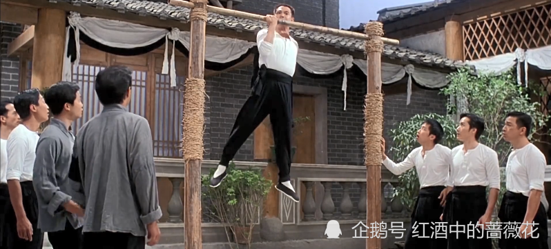 大家应该对片中陈真教师弟们功夫这场戏记忆犹新,在这场戏中,陈真曾经在单杠上连续做了3次单臂引体向上,而且是反握,简直让人瞠目结舌。