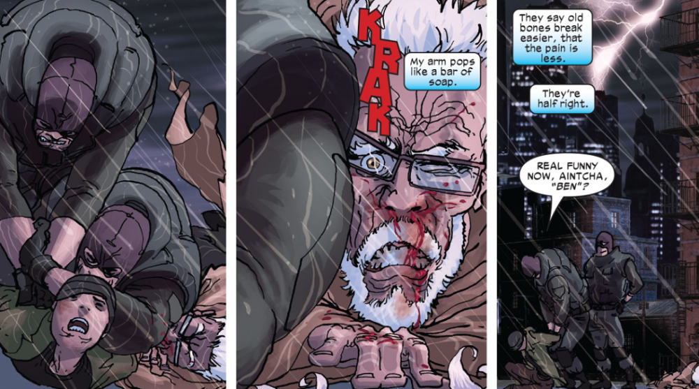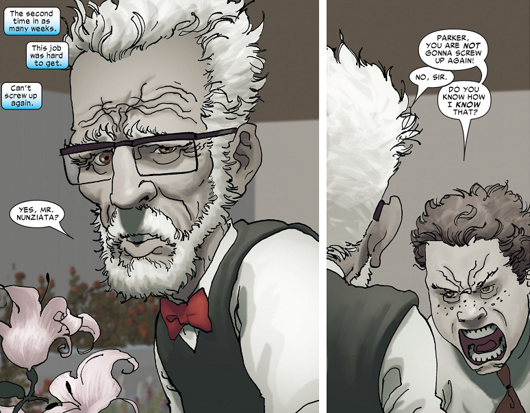 此时的彼得·帕克早已年过花甲,看上去甚至像是七八十岁的老头子。