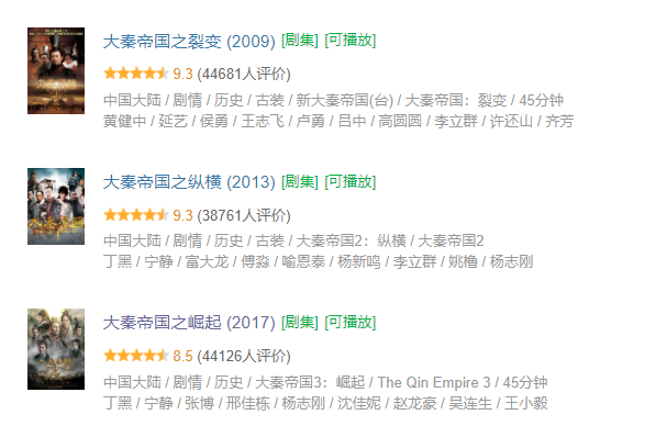 熟悉的历史人物与事务以戏剧化形象展开,大秦系列故事的大格局与底蕴夯的很扎实,让忙碌中的年轻观众,也不由得停下品味。