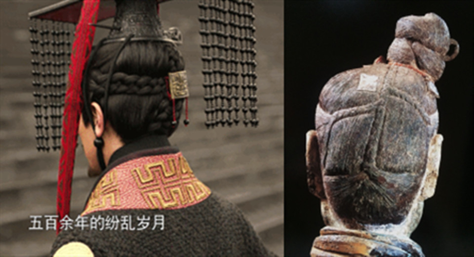 当然,这个编发并不是纯粹为了美观,而是根据历史资料进行还原的,在兵马俑造型里,便有许多男性编发,干净利落又有时代痕迹。