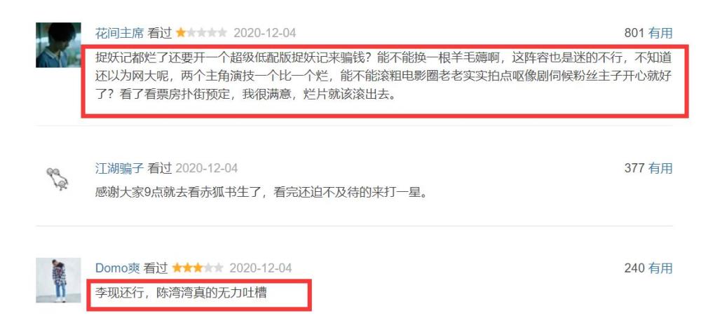 但是,票房高并不代表电影质量好,特别是《赤狐墨客》才第一天上映,进入电影院的人就如同第一个吃螃蟹的人,对电影质量全然不知,不排除有踩雷的情况。果不其然,电影上映今后不少网友将其冠以“烂片”之名,可见大家对电影失望透顶。
