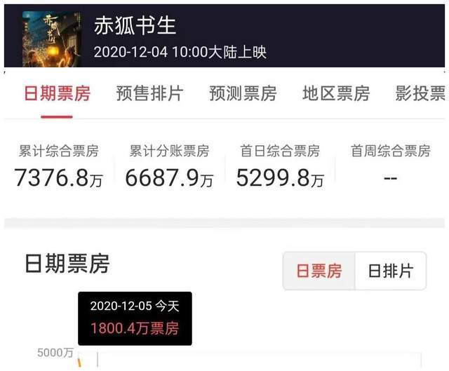 改编自网络小说,由李现 、陈立农 出演的《赤狐墨客》,上映前的预售票房就不甚理想,勉强突破了千万元。