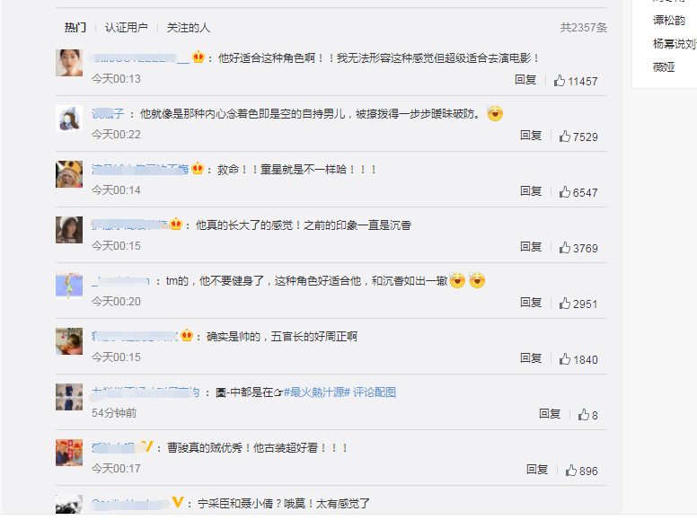 曹骏的古装扮相是真的特别,整小我一换上古装就有上世纪港片古装戏的气场,有时候就难免替他觉得有点可惜,会觉得他有点生不逢时……这种带气质的演员真的值得更好的 。
