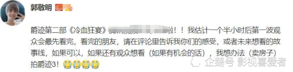 《爵迹》还没有绝迹,结局也是再次的给了观众们一个小小的惊喜,告诉你我这还不算完,等着还有下一部,回想着郭敬明在《爵迹2》开播时发文就要卖房子拍第三部,如今也是恍然,无论是发文还是电影的结局彩蛋都是为第三部做准备,求拍续集的观众心急那就快马加鞭的接着拍,骂的多了就缓缓过了这个风头再等一个四年。