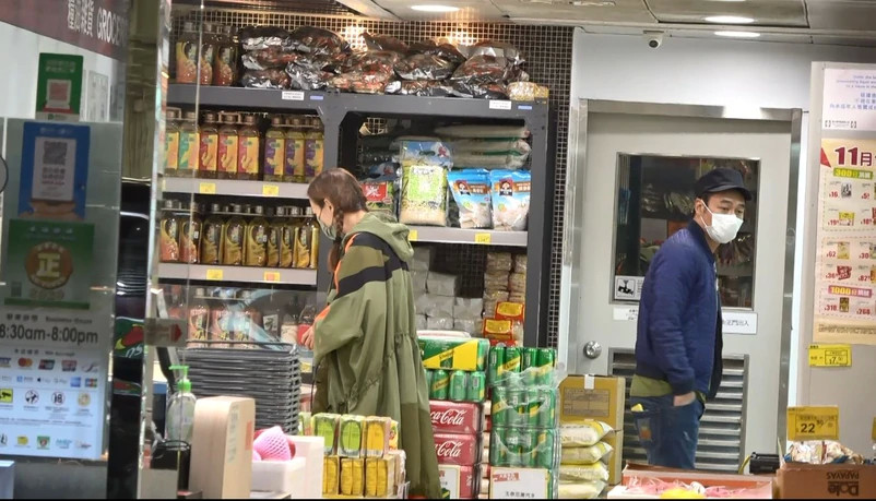 很快,许志安发现有记者拍照,他马上通知妻子,两人随即放弃买冻肉,急步离开。