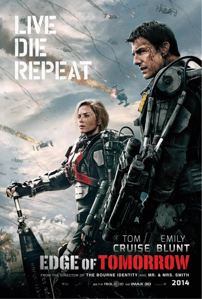电影《明日边缘》上映于2014年,讲述了未来世界陷入外星人入侵的恐慌中,汤姆克鲁斯饰演的军事演说家凯奇少校,虽然鼓动了数以万计的士兵前去前线与外星人战斗,但没有想到这件工作竟然也落到了自己头上。战役第一天就惨死的他意外获得了时空重制的能力,也由此与艾米莉布朗特饰演的女主丽塔相会,并惊奇的发现她也有和自己同样的能力。他们用自己的能力不竭重启时间,就是为了能战胜外星人头目“欧米伽”……