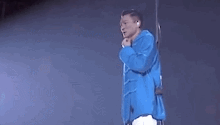 还有一次也是类似的情况,有粉丝想爬下台送花给他,结果被保安发现拖走。