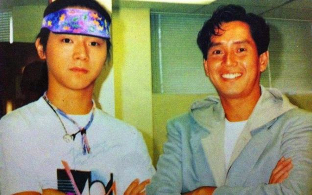猜一猜,这张照片中和祖贤合影的两小我分别是谁?中央那位比较好猜,右边那位估计很多人不知道是谁了。