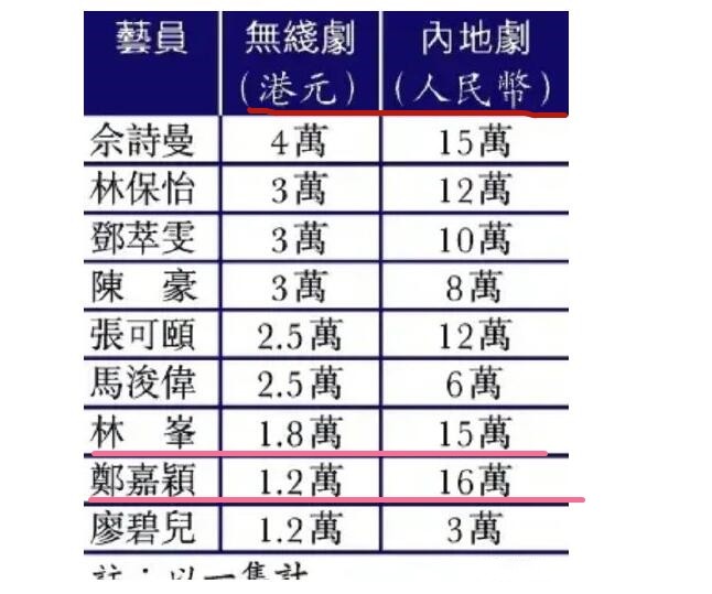 林峰在TVB1.8万,来到内地变成了15万,郑嘉颖1.2万,到内地拍戏16万。翻了10倍都不止