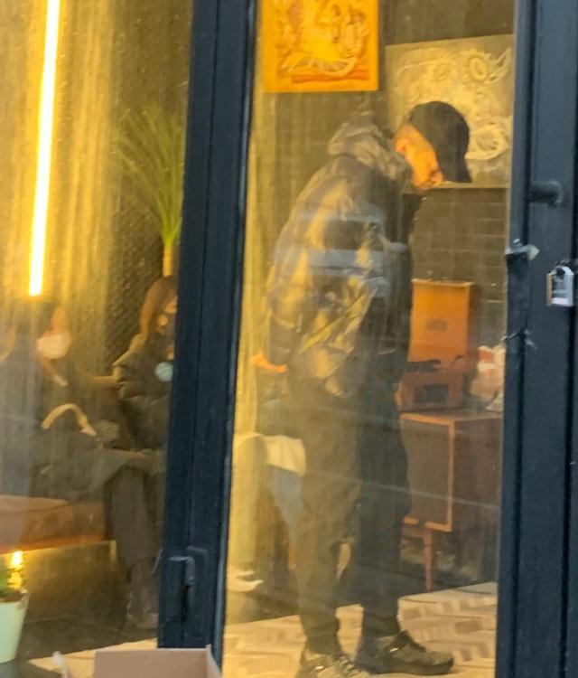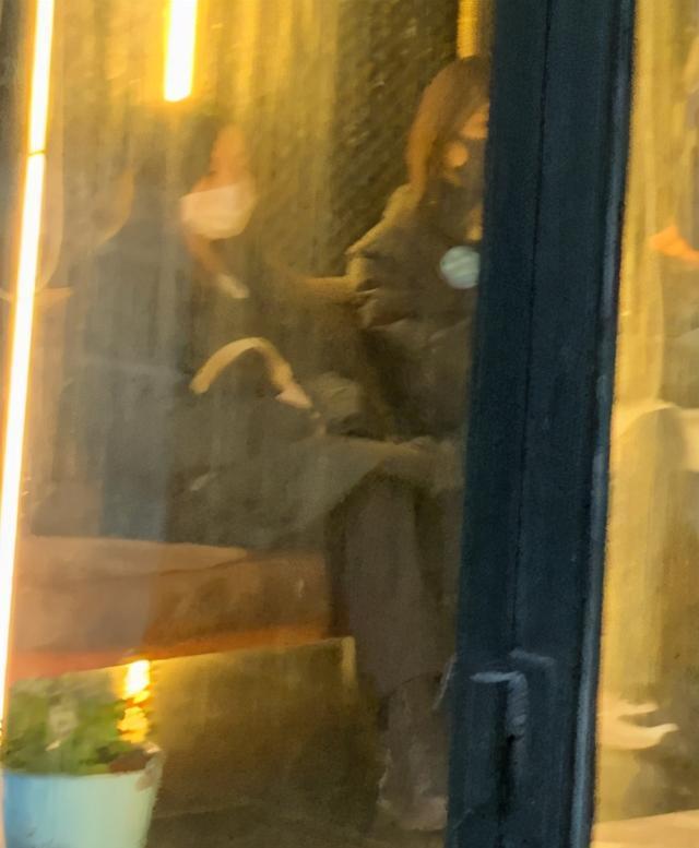 随后,李嫣和海哈金喜并肩坐在店里的沙发上静静等待,而李亚鹏则来回踱步,似乎在等店员翻找自己心仪的CD。值得注意的是,坐着的李嫣似乎在放空自己,目光空洞地看向前方,并且用口罩遮住了大半个脸,给人一种冷漠、抗拒的感觉。