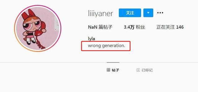 当然,在这段感情中最无法忽视的就是李嫣了,很多网友都关心她对父亲找一个比自己大16岁的'后妈'是甚么看法。稍早,有网友发现李嫣将自己社交账号中的简介更改为'Wrong Generation',意思为垮掉、错误的一代,引发热议。