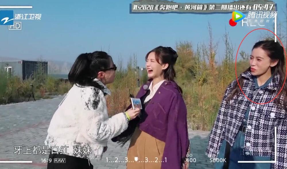 金靖的搞笑采访开始后,先问的是baby,或许是发现了baby的牙齿上沾了口红,因此只是问了一句就转向了其他人。