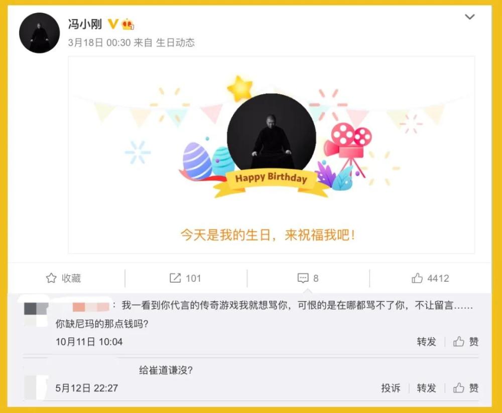 冯小刚早在两年前就领教过网友的厉害。2018年度过自己60岁生日后,冯小刚在微博上开始了和崔永元的骂战,引发了无数网友的围观甚至参与其中,他的众多微博下边留言都有数万之巨,网友相互站队,骂得不亦乐乎。