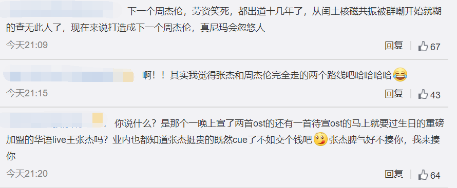 但是想要打造成周杰伦恐怕多少还是有些难度,正如热评所说张杰和周杰伦年龄相差并不大,真有这个机会早就成功了完全不需要再等三年。