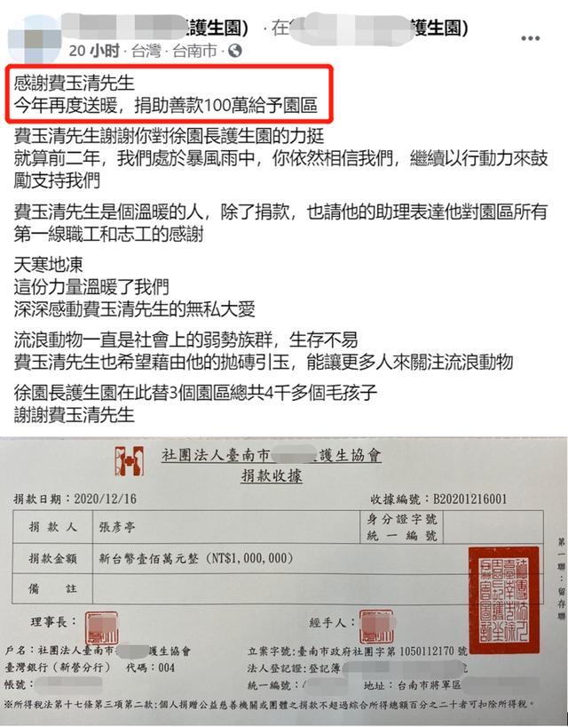 12月17日,某动物收容所负责人在社交平台上发文感谢费玉清再次捐助百万善款,称该款项共帮助到4000多只流浪动物,网友还在文中透露费玉清已经多次出资支持该团体,并大赞费玉清温暖无私。