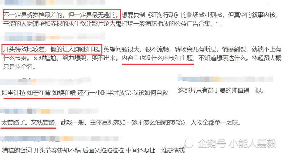 看过很多观影人的感受也是差评多多,电影画面依然震撼,场面从海陆空各视觉都展示了这部电影投资七亿的大手笔,但剧情上却是一大硬伤,说是演的太“假”更贴切一些,面对着天灾以血肉之躯对抗该是有着泪点的煽情,但《紧急救援》却以三段视觉讲述一个故事显得分心没有头绪,没有那层层推进令人着迷的情节,没有那扣人心弦的紧张,总是让观众们找不到泪点所在也成为了这部电影最大的失误之处。