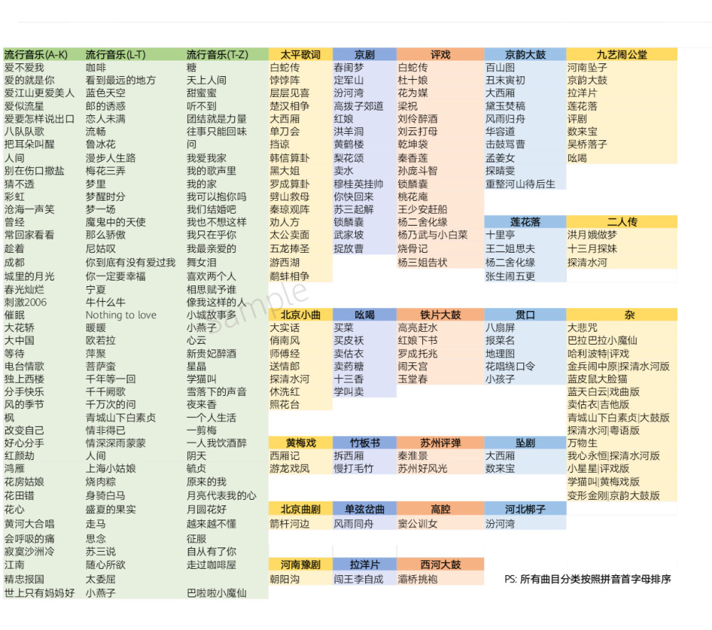 张云雷粉丝(三拾忆梦、拔丝白白)整理张云雷学唱曲目