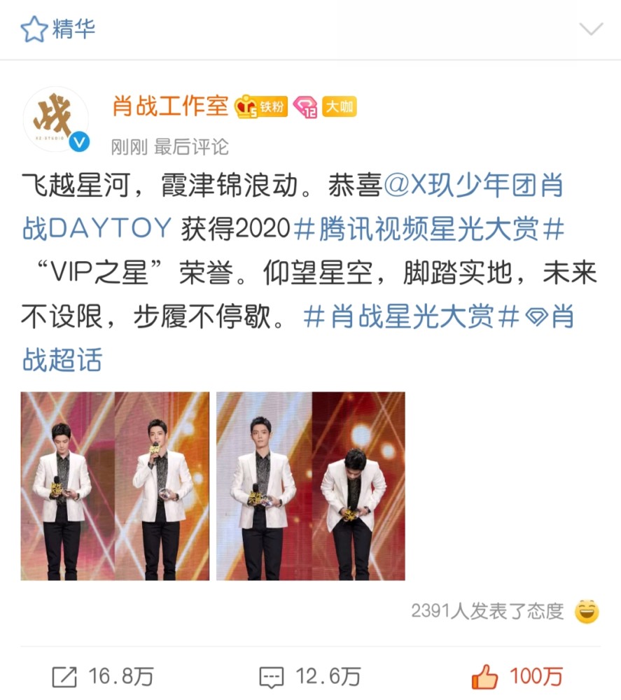 而他的粉丝也一向陪伴着他 ,肖家的 应援是红海 。小飞侠们为了守护肖战,在星光大赏的舞台上奔赴红海之约 。果然顶流不愧是顶流 ,就算这一年活动很少 ,他的影响力依然不减 ,而更胜曾经!