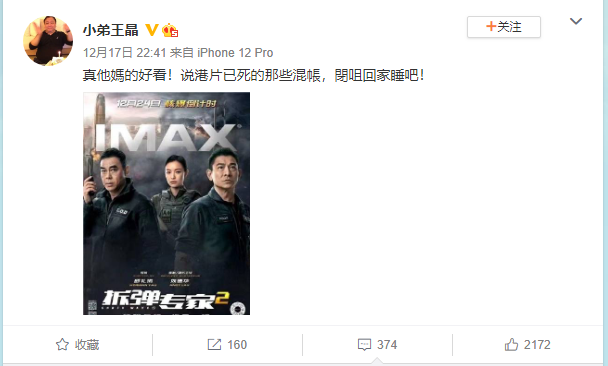 目前市面上对《拆弹专家2》的评价相当的高,加上在圈内同行的导演和演员的纷纷为之打卡支持下,这部还未正式公映的影片,就直接被吹上了天。