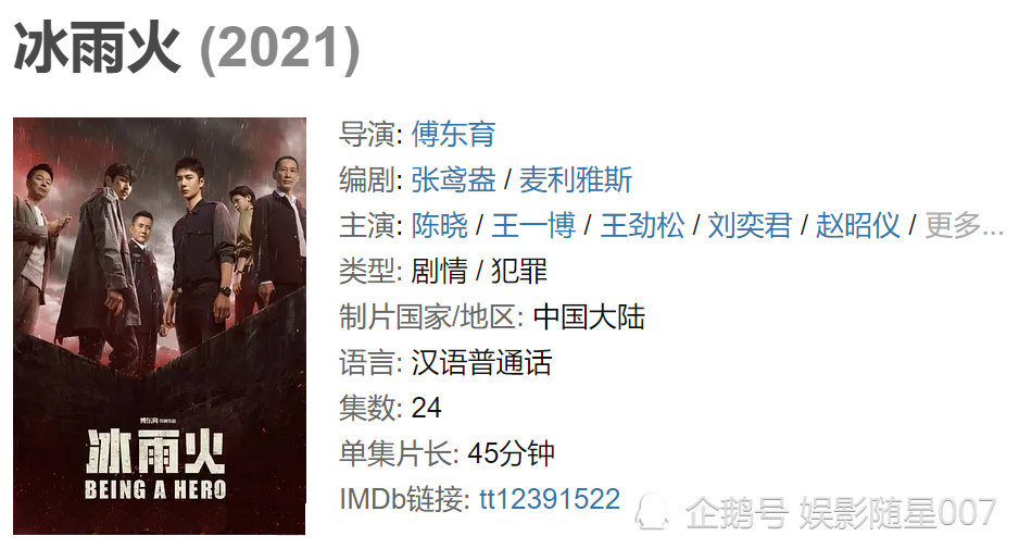另外,从《冰雨火》这部剧总共24集(每集时长45分钟)剧集数量来看,可见该剧应该不会有注水情节存在。