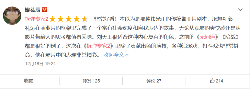 根据影迷反馈,《拆弹2》最受好评的有三点: