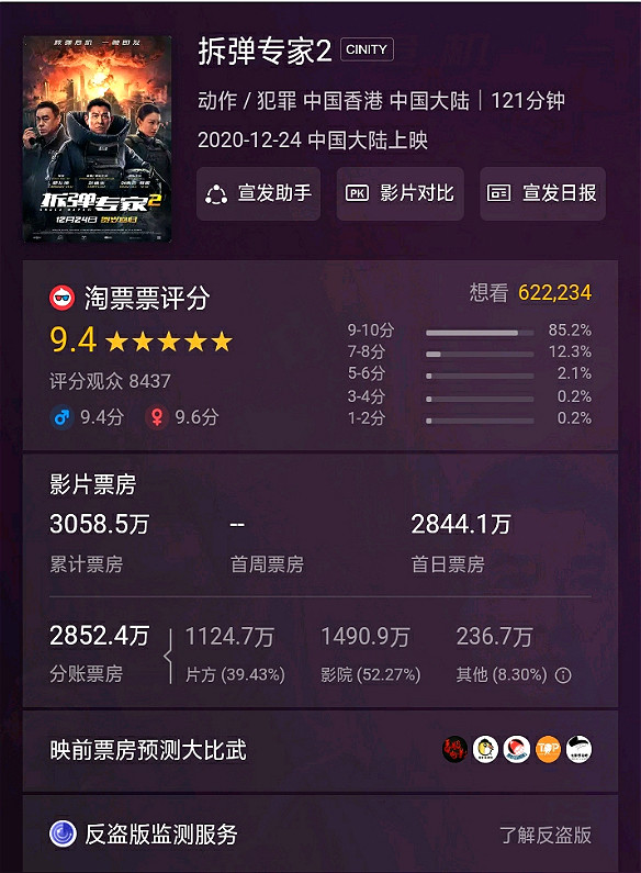 然而小编还是错了,甚至错得离谱,《拆弹专家2》上映仅仅几个小时就口碑票房双爆发,给了贺岁档一个王炸级别的开局!