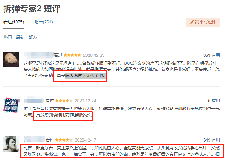 除了票房上持续上涨,影片同样获得观众们好评如潮。不少观影过后的网友纷纷给予好评:“院线港片天花板了吧。”“真没想到续作比前作强那么多”“比第一部更好看!真正意义上的猛片,如此振奋人心。全程高能无尿点,从头至尾紧张的我手心出汗,又燃又炸又爽。集燃点、爽点、泪点于一身,可以负责任的说,绝对是年度最好看的真正意义上的港式大片。”