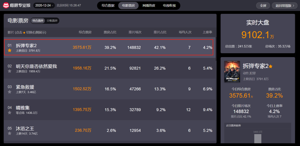 在刘德华、刘青云两大影帝强势加盟以及导演邱礼涛保驾护航下,影片上映首日便取得不错的开局效果,票房数据强势领跑。截止发文时间,从猫眼专业版实时票房数据显示获悉该片以上映首日,累计总票房破3700万(包括超前点映票房),综合票房3575.61万,排片场次14.48万,场均人次7人,上座率4.2%的数据领跑单日票房榜。