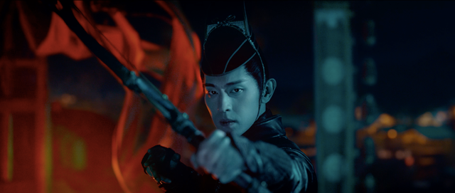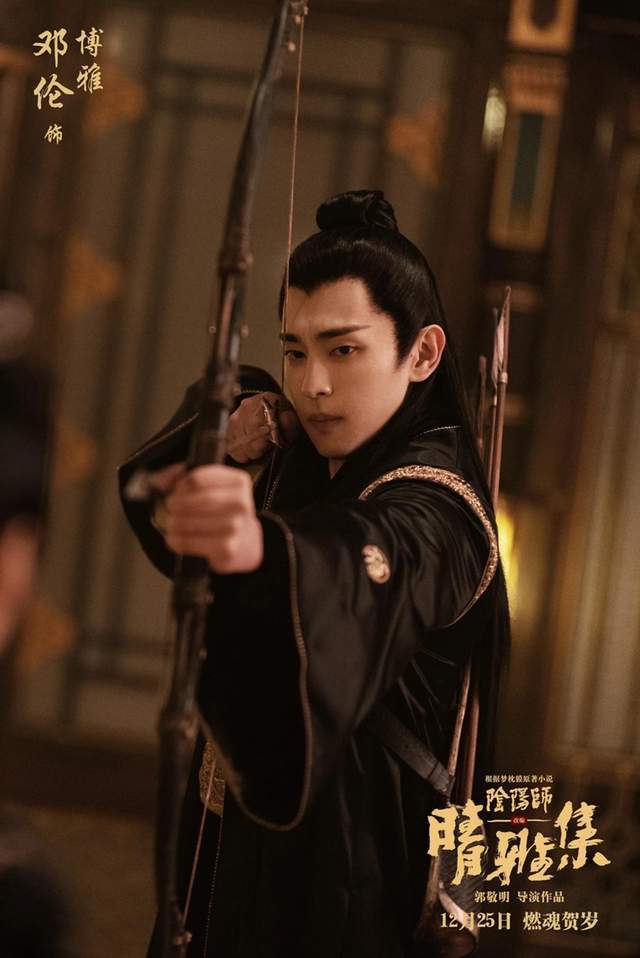 邓伦在这部电影当中饰演武士博雅这个角色,为天都城的百姓,降妖除魔,守护天都城的安宁。一身黑色武士盔甲,手拿杀妖长弓,头戴发簪,聚气凝神的武士造型太过惊艳。