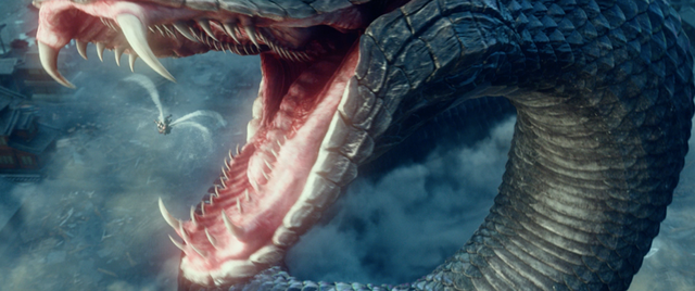 与大蛇搏斗的那场戏,非常激烈,演员的标准动作加之特效,整个画面的视觉冲击力非常完美。