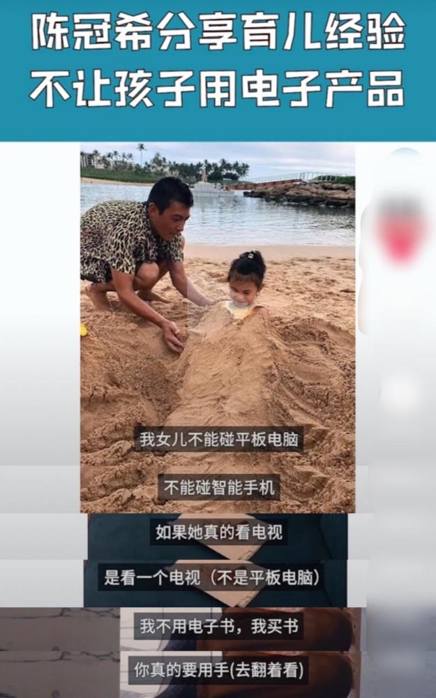 有人说陈冠希不希望女儿接受电子产品,并不是为了女儿好,而是担心女儿长大以后看到跟自己相关的负面新闻和视频。可事实上陈冠希不让孩子看平板电脑和智能手机,首要是希望让孩子接触到最朴实无华的生活,而不是天天与电子产品为伍。