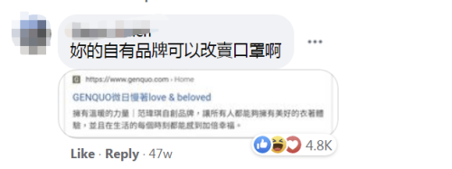 台湾歌手范玮琪就在脸书发文狠呛苏贞昌:“‘行政院长’竟然禁止口罩出口一个月,这是一件多么低俗、没人格的臭流氓行为。”“有听错吗?这个狗官算是小我吗??都什么时候了!!不会这么泯灭人性!!”