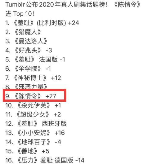 除此以外,《陈情令》还开了演唱会,当时把粉丝们弄得泣不成声。但是这一年过去了,《陈情令》的热度却还没有消散,在去年的时候,《陈情令》成功的入围了2019年的Tumblr榜单上。