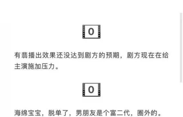 近日有网友爆料,声称这部剧因为播放量成绩什么的都达不到预期,所以剧组开始给主演施压了,说句实话听到这个爆料,感觉主演们是真的惨,因为这本身就和主演们无关呀,剧本烂导演烂才是根本问题,演员的锅很小很小。