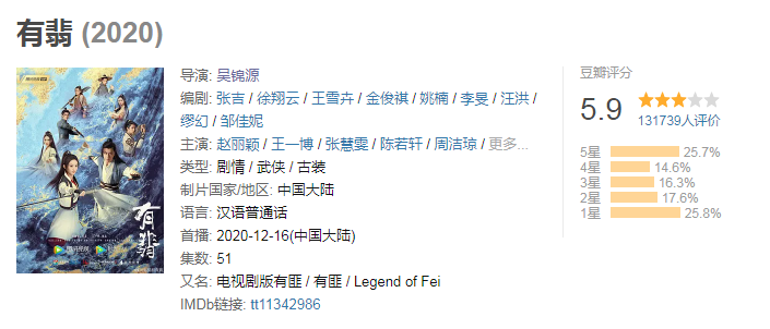 可以说《有翡》是一把含着金汤勺出身的顶级古装剧,所以从立项、拍摄到播出都备受大家期待。