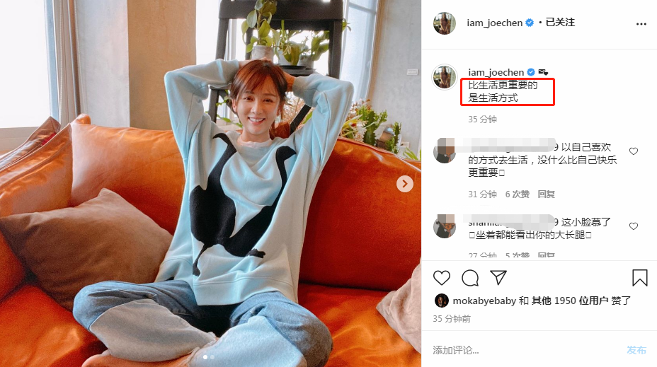 12月27日,陈乔恩在小我社交平台分享了两张男友视角美照秀恩爱,还写道:“比生活更重要的,是生活方式”,正能量满满。随后,莫文蔚火速前来点赞,看来也是被陈乔恩的生活态度感染到了。