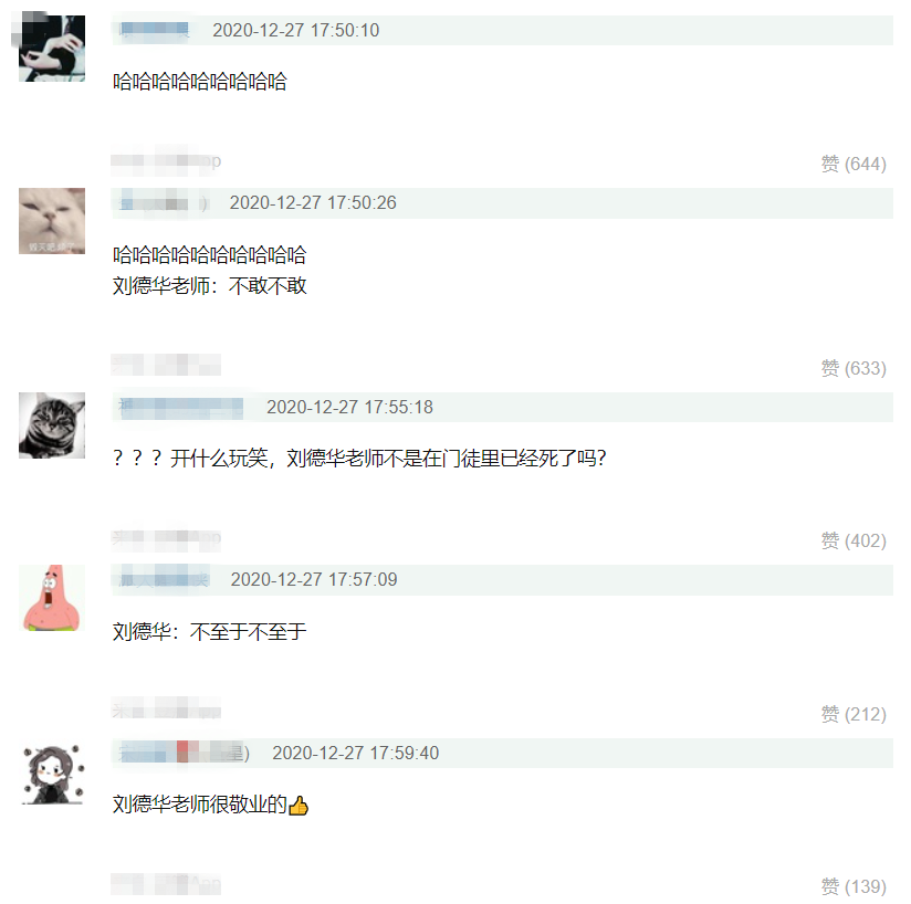刚开始,小编还以为留言里的人都在故意“抖机灵”,直到小编看到了另一名网友如此认真的评论:“不必然,刘德华老师很敬业的”。