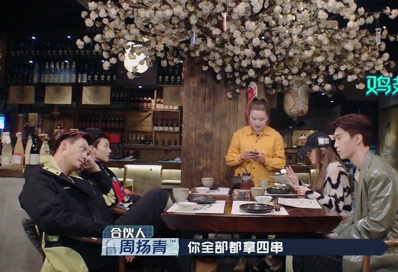 由于本期店内的收益比较高,所以陈伟霆决定请大家吃饭。几位嘉宾来到一个日料店,陈伟霆让周扬青点单。当周扬青点完菜后,陈伟霆竟然对服务员说了句“有没有香肠这里?”