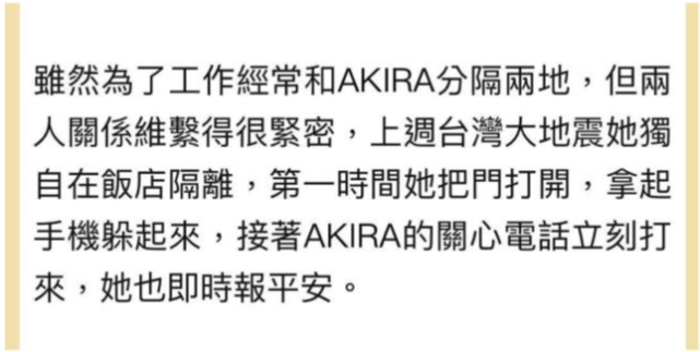 另外,林志玲还透露从日本返回隔离时,遭遇了台湾地震,她做好了应急处理,把门打开拿好手机躲好。紧接着丈夫akira的关心电话就打给了自己,她随即报平安。可见平日里夫妻两小我,还是时刻保持着联系的。