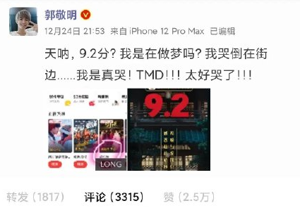 圣诞节前夜,郭敬明接到刚刚出炉的分数,兴奋得爆了粗口。