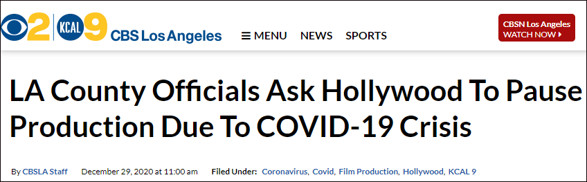 据美国哥伦比亚广播公司(CBS)当地时间29日报道,目前,洛杉矶县已经开始缩紧防疫措施,要求还在继续运作的好莱坞电影和电视行业“自愿”暂停制作。
