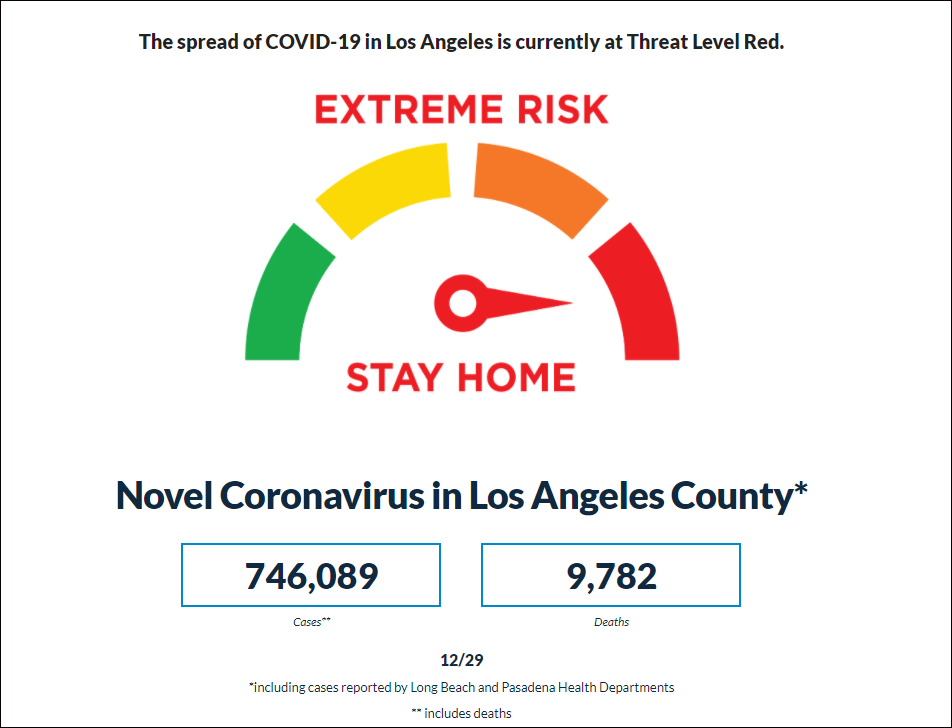 目前,洛杉矶新增病例正创下历史记录,入院人数也在激增。据洛杉矶县政府统计数据,当地29日较前一日新增确诊病例12979例,累计病例高达746089例;新增死亡227人,累计死亡人数9782人。