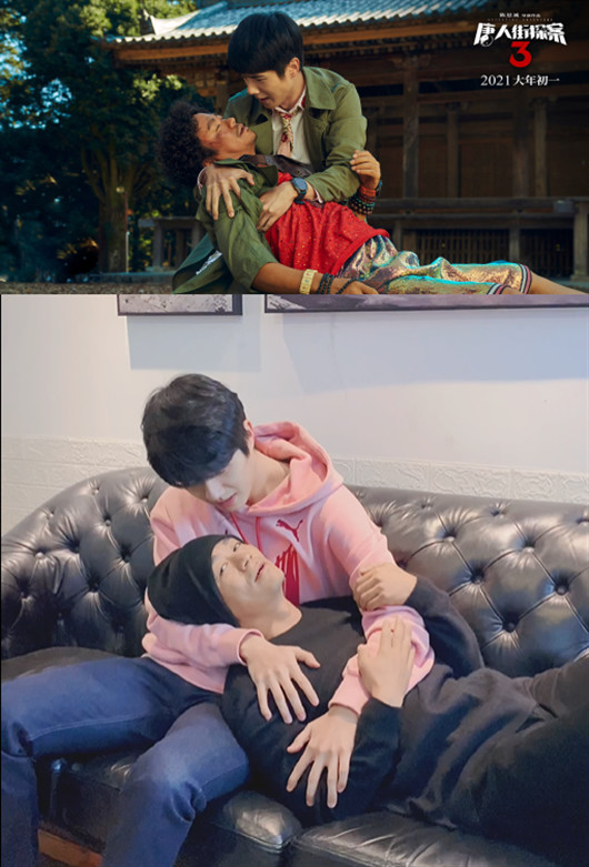 从最初的唐仁(王宝强 饰)、秦风(刘昊然 饰)两位侦探,到第二部的宋义(肖央 饰)加盟变“唐三角”,第三部的野田昊(