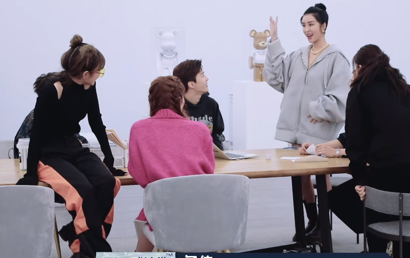 从图片中能看到范丞丞和其他的嘉宾们一路在研究照片,在努力的工作,他们的注意力都在工作上,这时赵小棠就被冷落了。