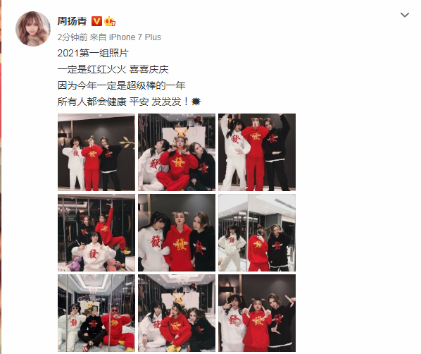 1月1日下昼,罗志祥前女友周扬青在小我社交平台分享了一组与闺蜜在自家豪宅拍摄的新年写真,还写下了对大家的祝福:“2021第一组照片,必然是红红火火 喜喜庆庆,因为2017必然是超级棒的一年,所有人都会健康 平安 发发发”。