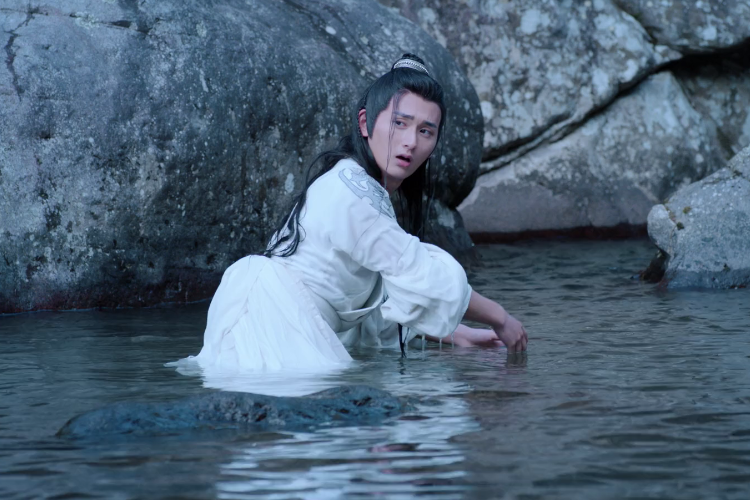 大家应该还记得,魏无羡和聂怀桑捉鱼的时候,有一个魏无羡搞恶作剧,诓骗聂怀桑前面有鱼,结果却一脚将聂怀桑踹倒水里的欢乐镜头。