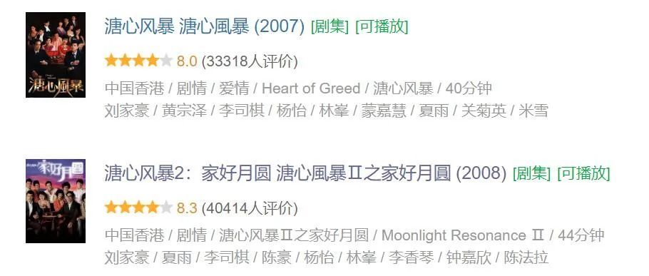 《溏心风暴》是TVB回光返照的爆爆剧,第一部是2007年收视亚军,第二部不单是2008年冠军,而且是TVB史上收视最高的本土剧集,平了《大长今》这个外来和尚的纪录,而且《溏心风暴之家好月圆》是罕见的续集评分和收视均超过第一部的特例。
