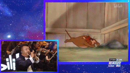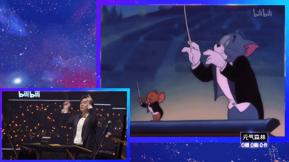 就连我们的童年B站也没放过,赵兆和吴彤带着百人管弦电声乐团演奏了《新闻联播》主题曲,以及《金蛇狂舞》。最妙的是,《金蛇狂舞》配的视频背景是《猫和老鼠》,节奏和动作都神同步,卡点卡得极为舒爽,剪辑师值得一个大红包。