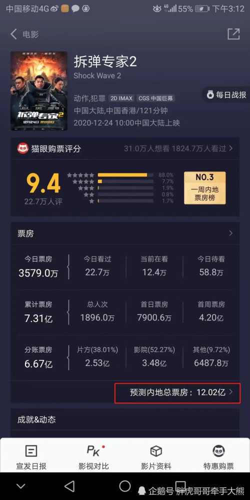 《拆弹专家2》猫眼票房预测一向在涨,从8.7亿元到11.36亿元,最新预测已达12亿元,看来有望超过《无双》12.7亿元的总成绩!很多观众说《拆弹专家2》不如《无双》烧脑,因此少了很多二刷、三刷的空间,其实仔细想来,《拆弹2》可以解读的空间也不少的。(以下含剧透)